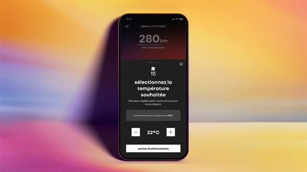 From your My Renault mobile app, remotely monitor the charge level of your Renault 5, control the temperature and start charging from the comfort of your home.